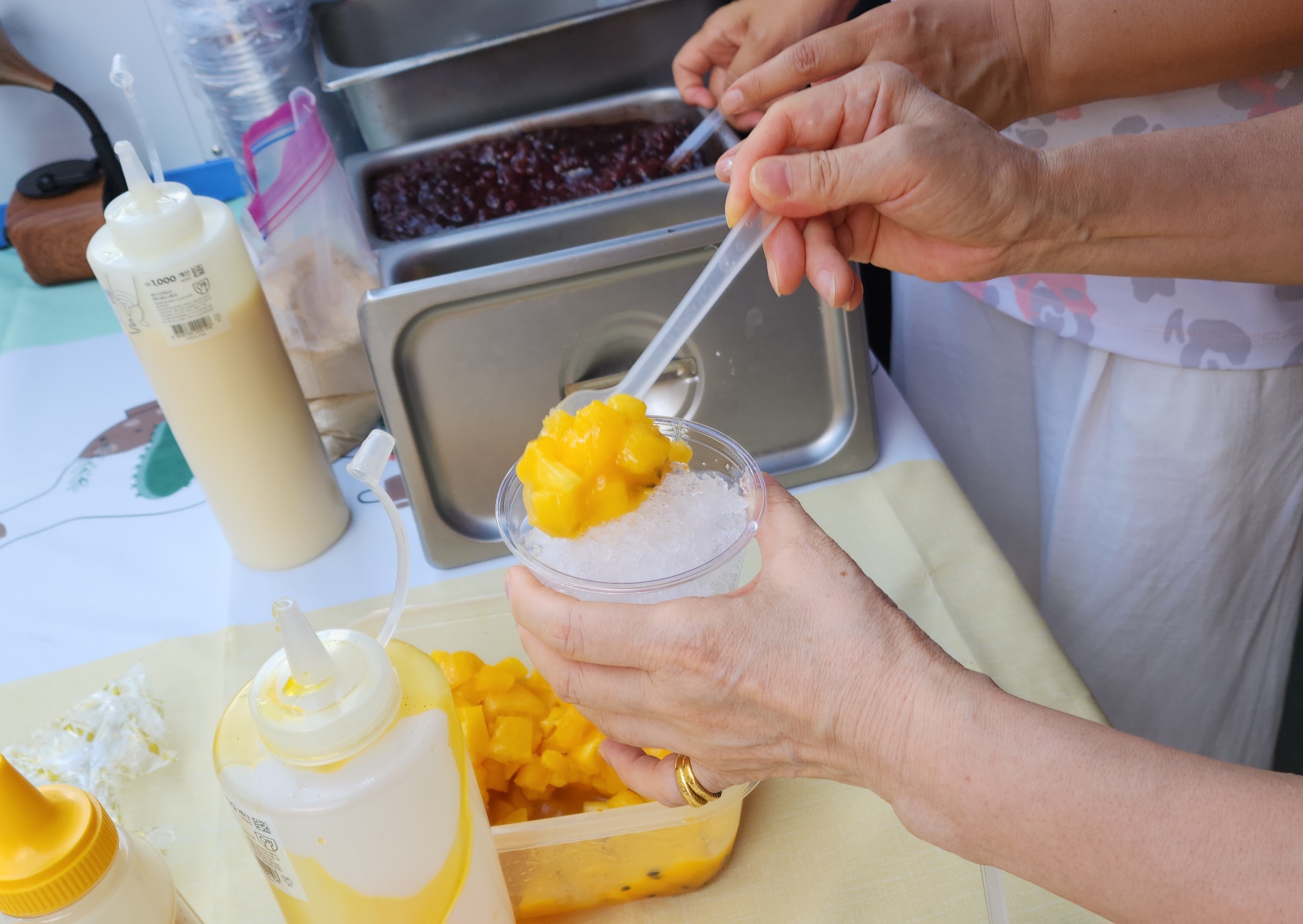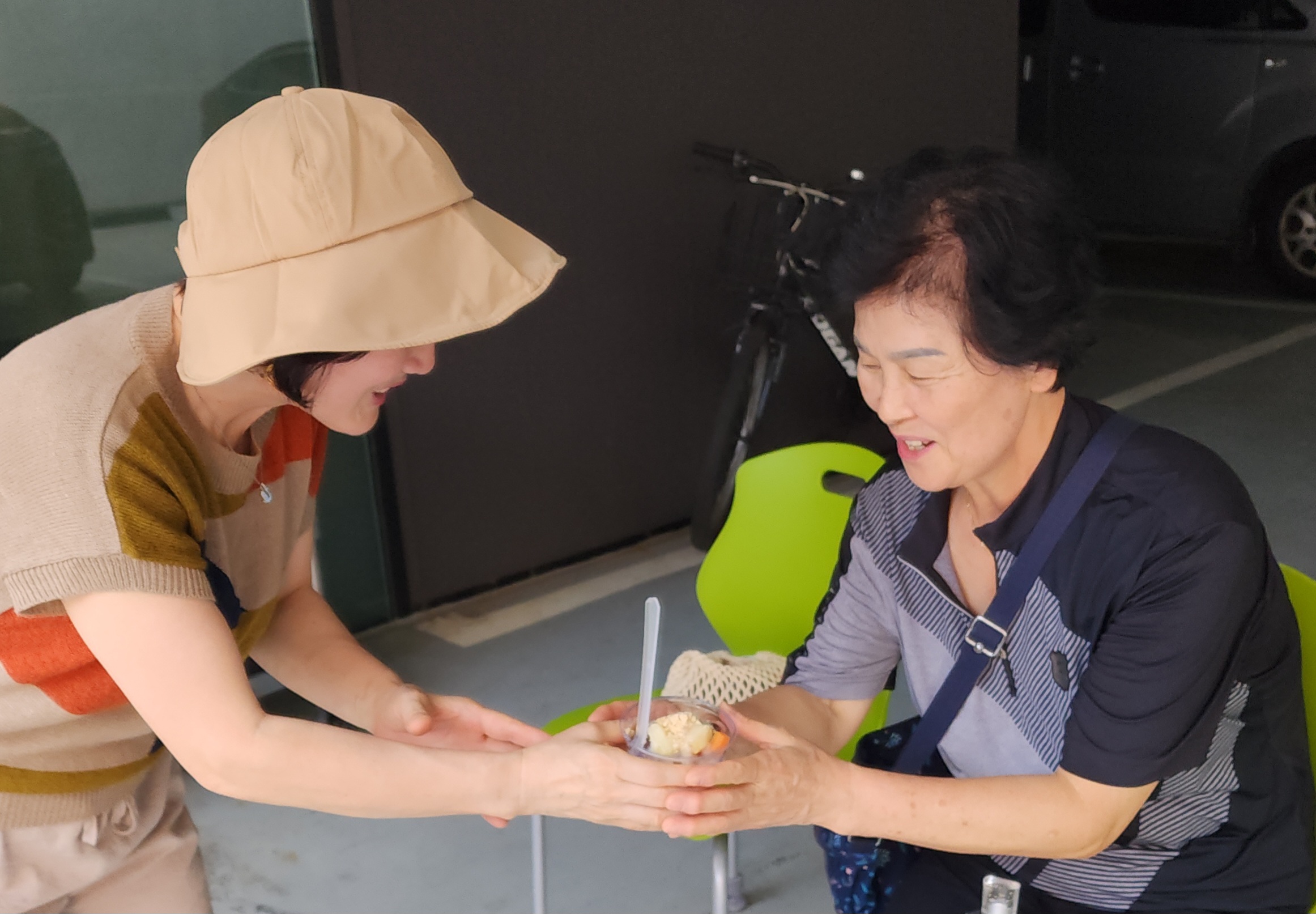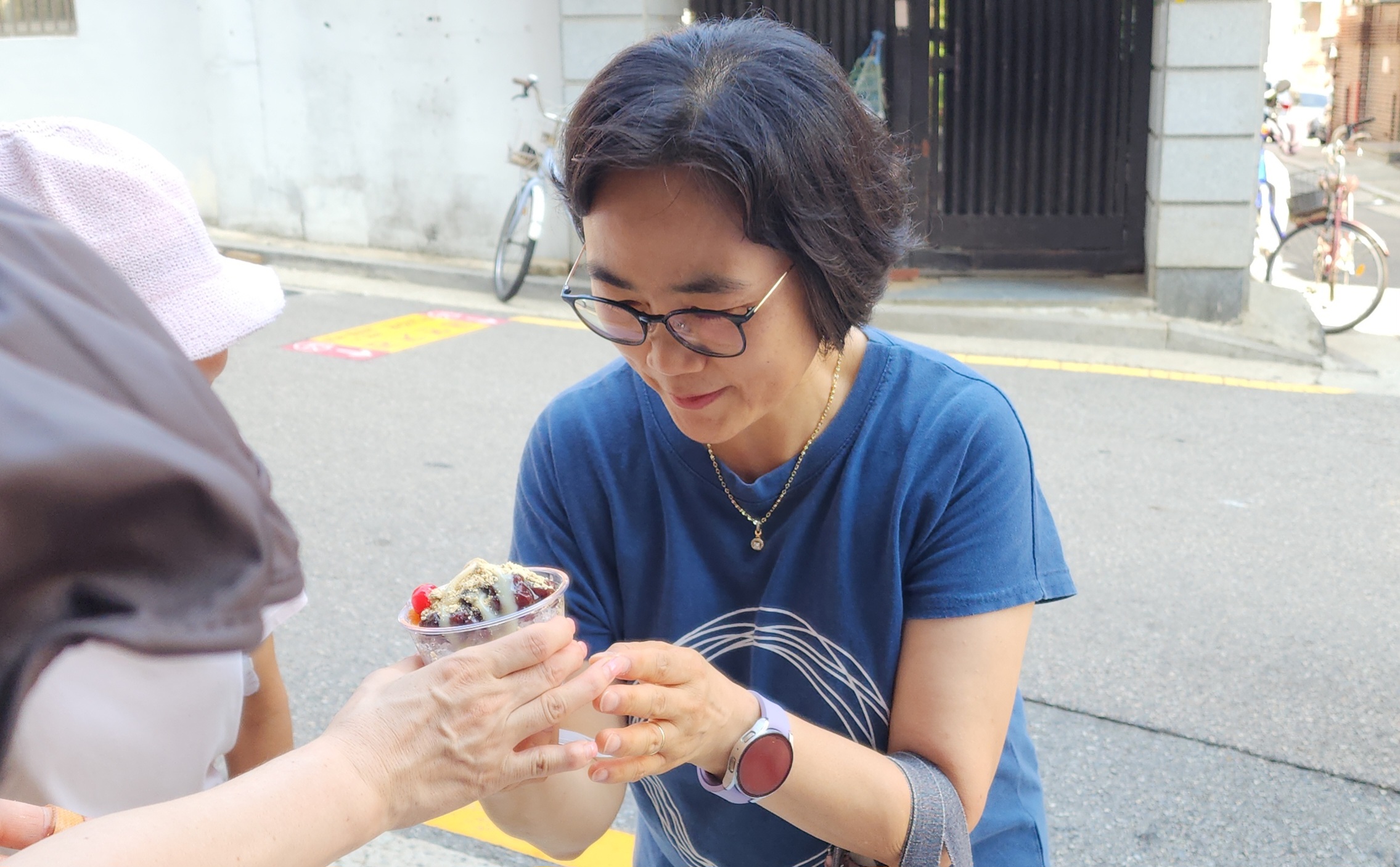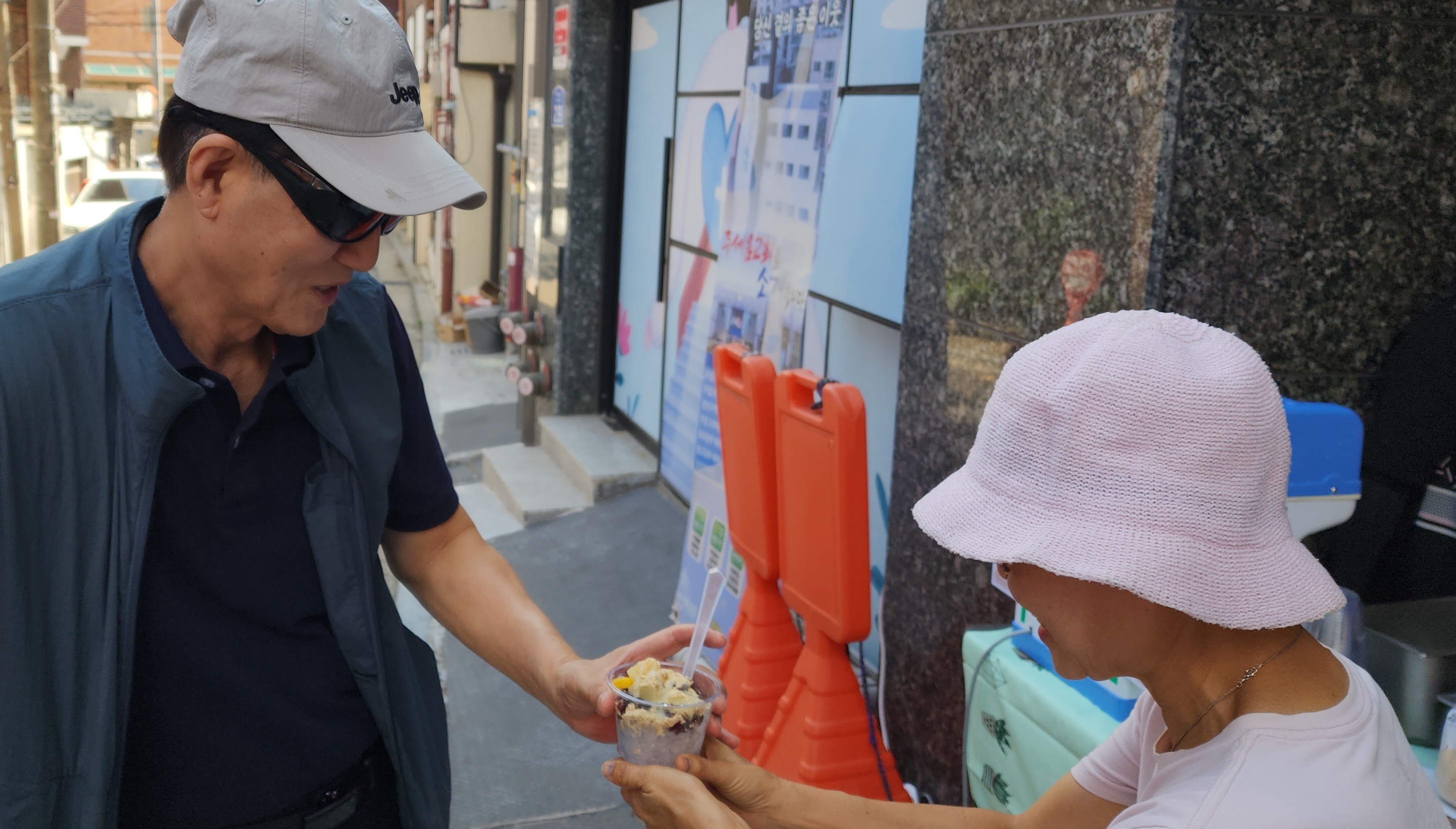 수요전도 26주차 대박 잘했어요 ^~^ 올해 들어 최고로 더운날 컵빙수전도를 해서 그런지 모두들 고마워하고 잘 받아 갔어요. 오늘은 건대부중이 기말고사 기간이라 일찍 가는 바람에 학생들은 많지 않았어요. 그런데 이웃분들 어른들 청년들이 많이 받아 갖고, 대화를 나누며 관계를 맺고 교회를 오신다고 하는 분도 많이 계셨습니다. 여자 고등학생 두 명은 일찍 와서 카페에서 기다리다가 컵빙수를 받아 갔어요. 날이 더우나 사람이 많으나 전도는 하면 하나님이 열매 맺게 해 주신다는 생각이 듭니다. 오늘도 행복한 컵빙수 전도였습니다~