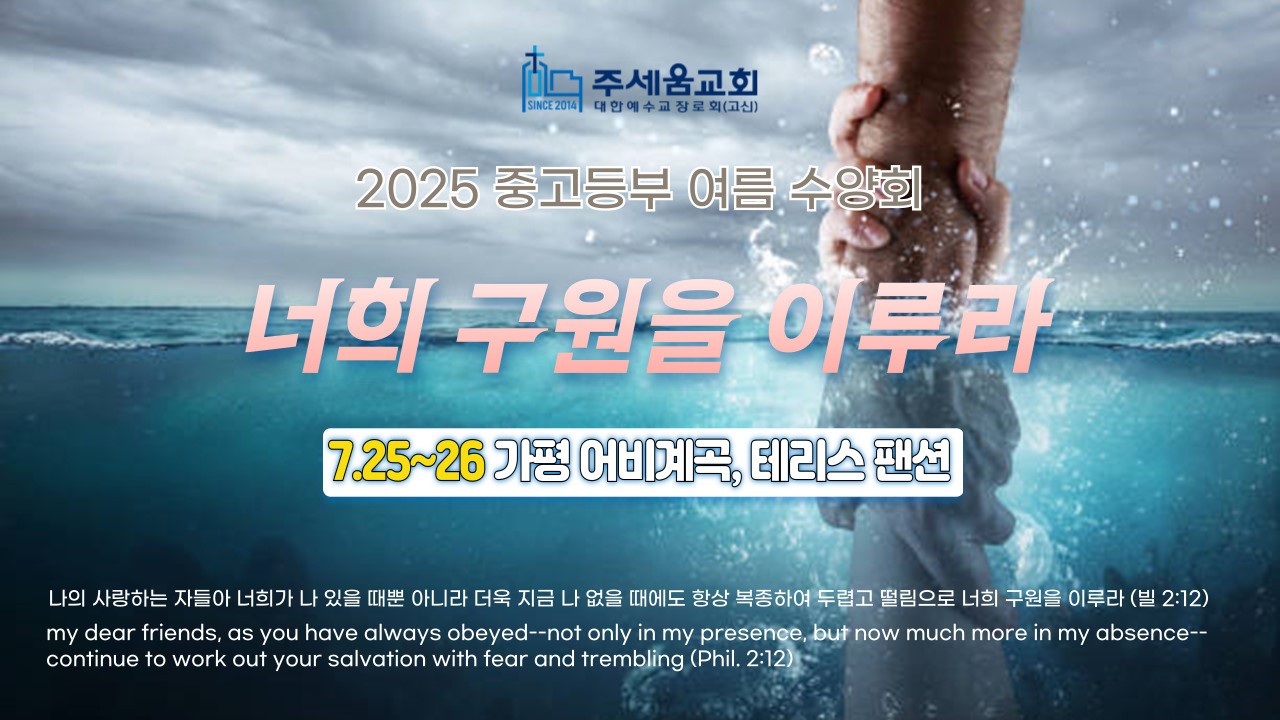 | 2025 중고등부 수양회 영상 (0) | 2025.08.01 |