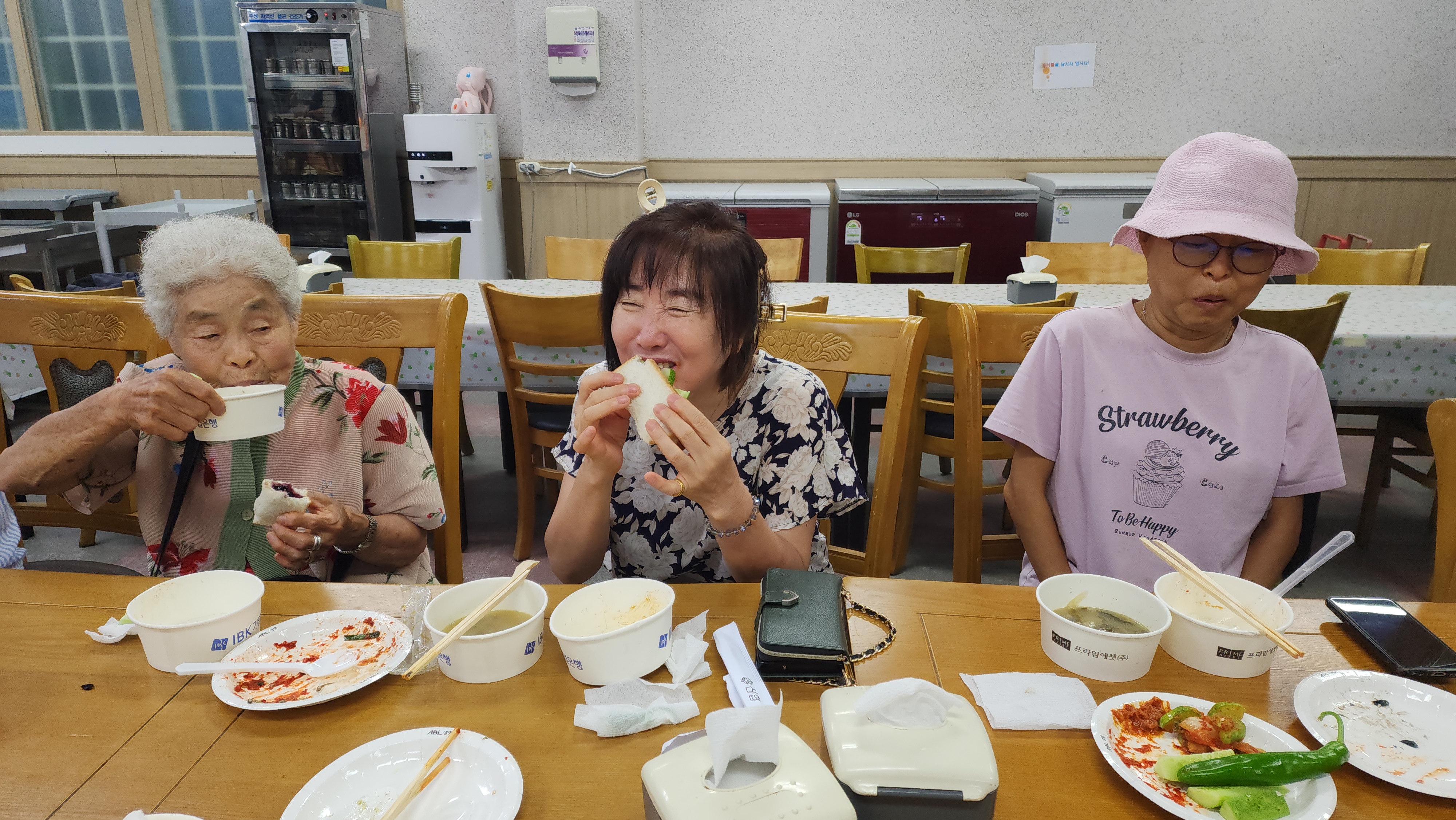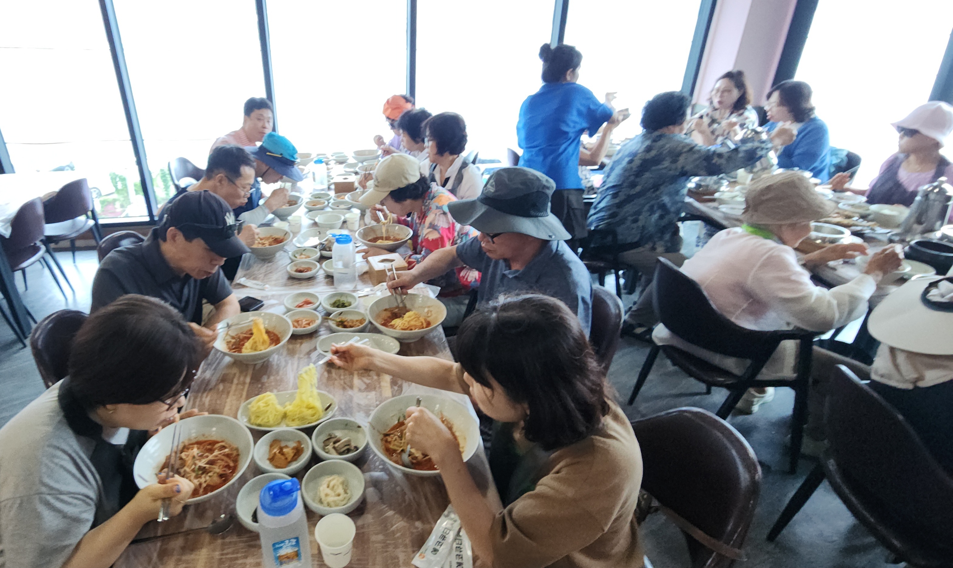 장년부 수양회 둘째날 성공적으로 마쳤어요. 아침에 일어나 해금강 외도행 배를 타러 갔는데, 풍랑주의보로 배를 탈 수 없었어요. 하지만 불평하지 않고 [파노라마 케이블카]를 먼저 타러 가서, 너무 좋은 경치 속에서 구경하고, 추성식 집사님께서 찬조해 주신 돈으로 시원한 음료도 먹었어요. 그리고 [와현 해수욕장]에서 해수욕하고, 숙소에서 커피값 내기 [윷놀이]로 즐거운 시간 보냈습니다. 점심으로 [물회국수&생선구이], 저녁으로 [들깨 오리탕] 맛있게 먹었어요. 낮에는 비가 오지 않고, 밤에는 비가 와서 야외 활동하는데 아무 지장이 없었어요. 오히려 시원했어요. 오늘도 모든 일정을 성공적으로 안전하게 마치게 하신 하나님께 감사드립니다~