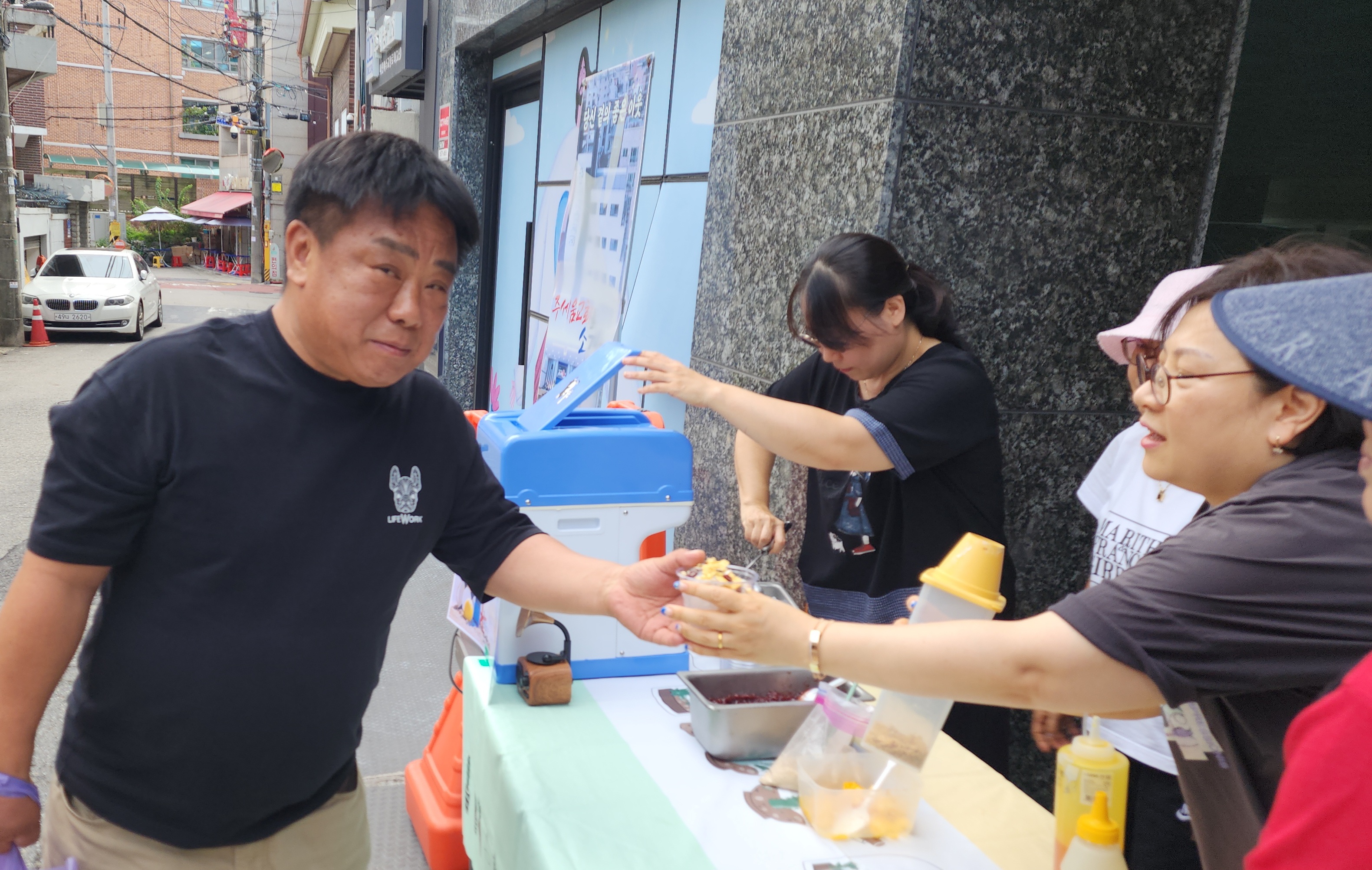 수요전도 28주차 잘했어요. 7~8월 쉬고 9월 첫주 다시 시작해서 숟가락도 없고, 시리얼도 없고, 망고도 부족해서 애를 먹었어요. 그런데 학생들, 동네분들, 행인분들, 기다렸다는 듯이 모두들 오셔서 잘 받아 가셨어요. 아직 날이 더워서 수요일 금요일 다 빙수전도로 해야 될 것 같습니다. 수요 금요 전도를 통해 교회가 알려지고 교회를 찾는 분들이 오실 수 있도록 기도해 주시길 바랍니다. 수고하신 분들께 감사드립니다~