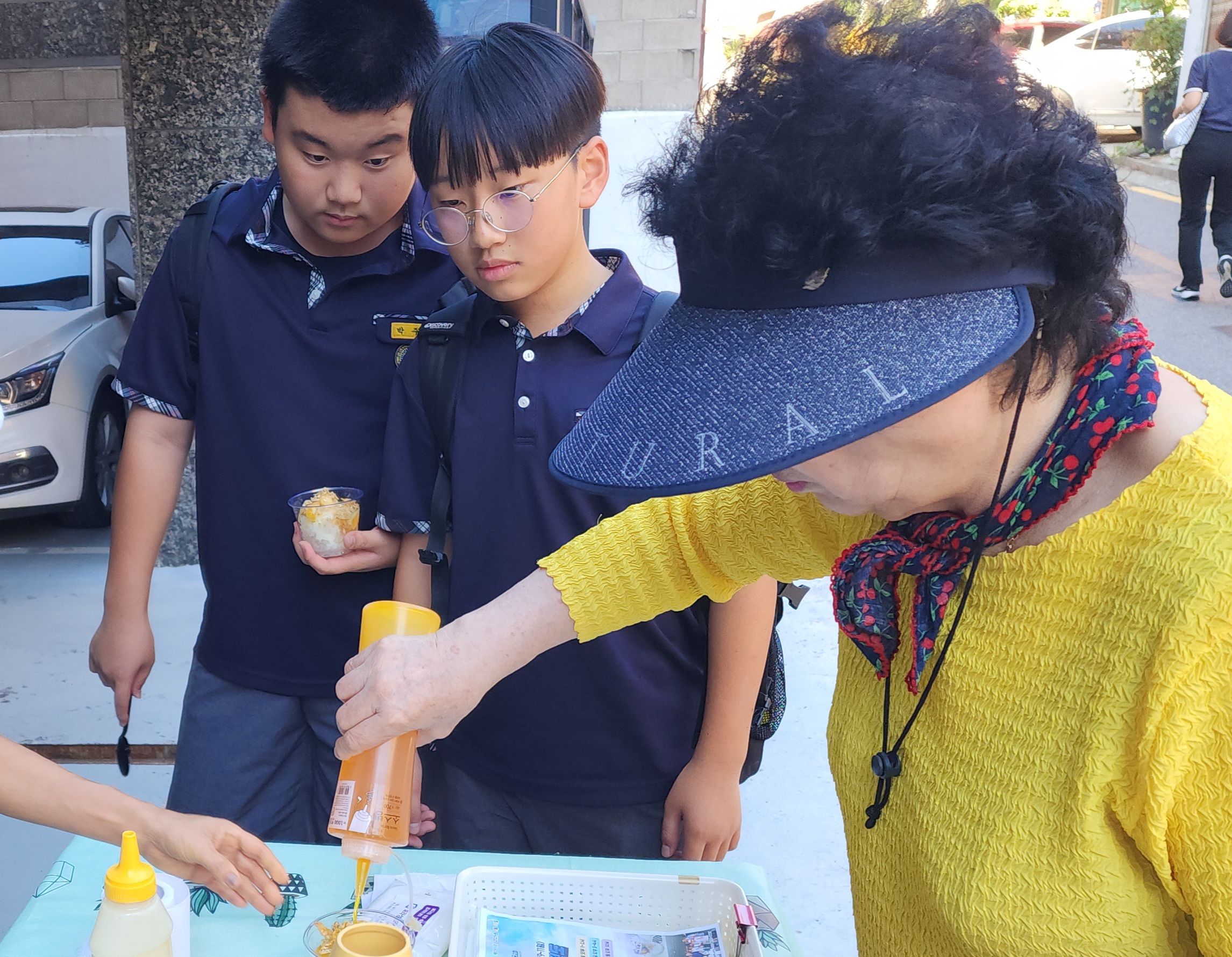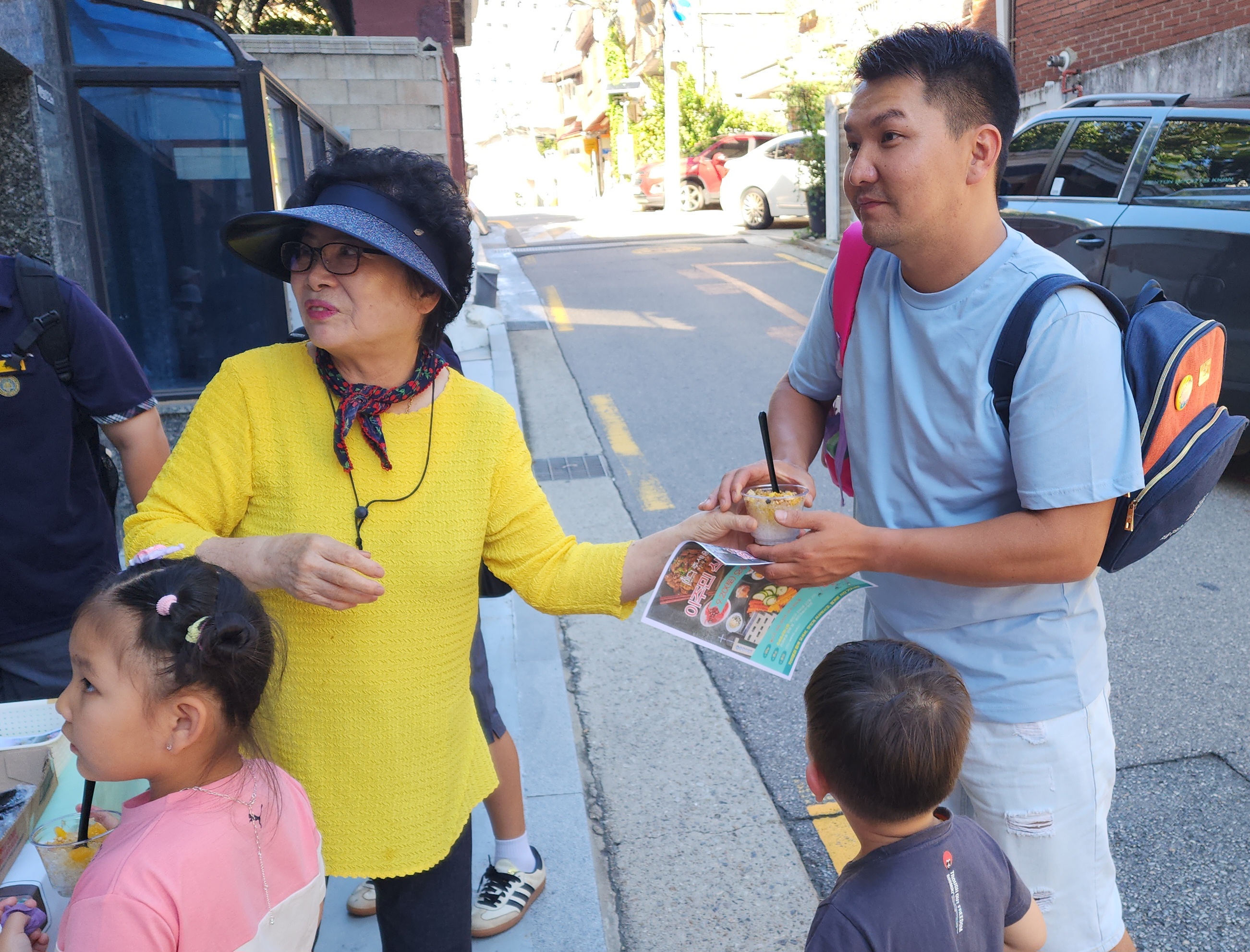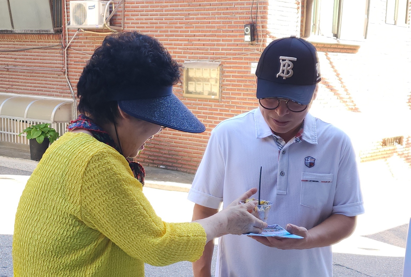 수요전도 29주차 너무 잘했어요. 오늘도 낮에는 더워서 컵빙수가 너무 잘 나갔어요. 이웃분들 많이 받아 가시고, 행인 분들도 많이 받아 가셨어요. 특별히 전에 팝콘 떡볶이 어묵 받아 가셨던 분들이 기억하고 또 받아 가셨어요. 이웃에 집 리모델링 하는 사장님들께도 갖다 드렸더니 너무 고마워하셨어요. 어떤 분은 교회 한번 오시겠다고 주보 가져가셨어요. 특별히 어떤 중앙아시아에서 오신 분이 아이들과 오시길래, 얼른 한국어교실 팜플렛을 드렸더니, 고향에 있을 때 교회를 다니셨고 오신다고 말씀하셨어요. 오늘도 기쁘고 보람 있고 열매가 있는 컵빙수 전도였습니다.