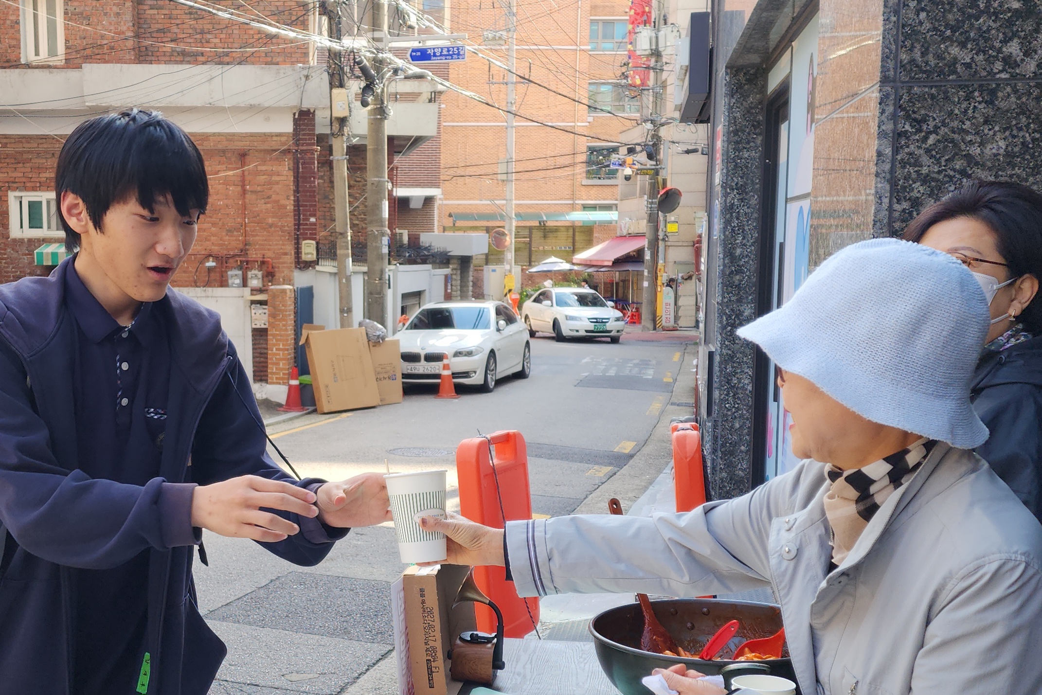 수요전도 32주차 잘 했어요. 오늘은 학생들 행인 분들 이웃분들 새롭고 다양한 분들이 많이 받아 가셨어요. 그리고 왜 하는지 언제 하는지 물어보시고, 배고팠는데 잘 됐다고 고마워하셨어요. 오늘도 보람 있는 떡볶이 전도였습니다~