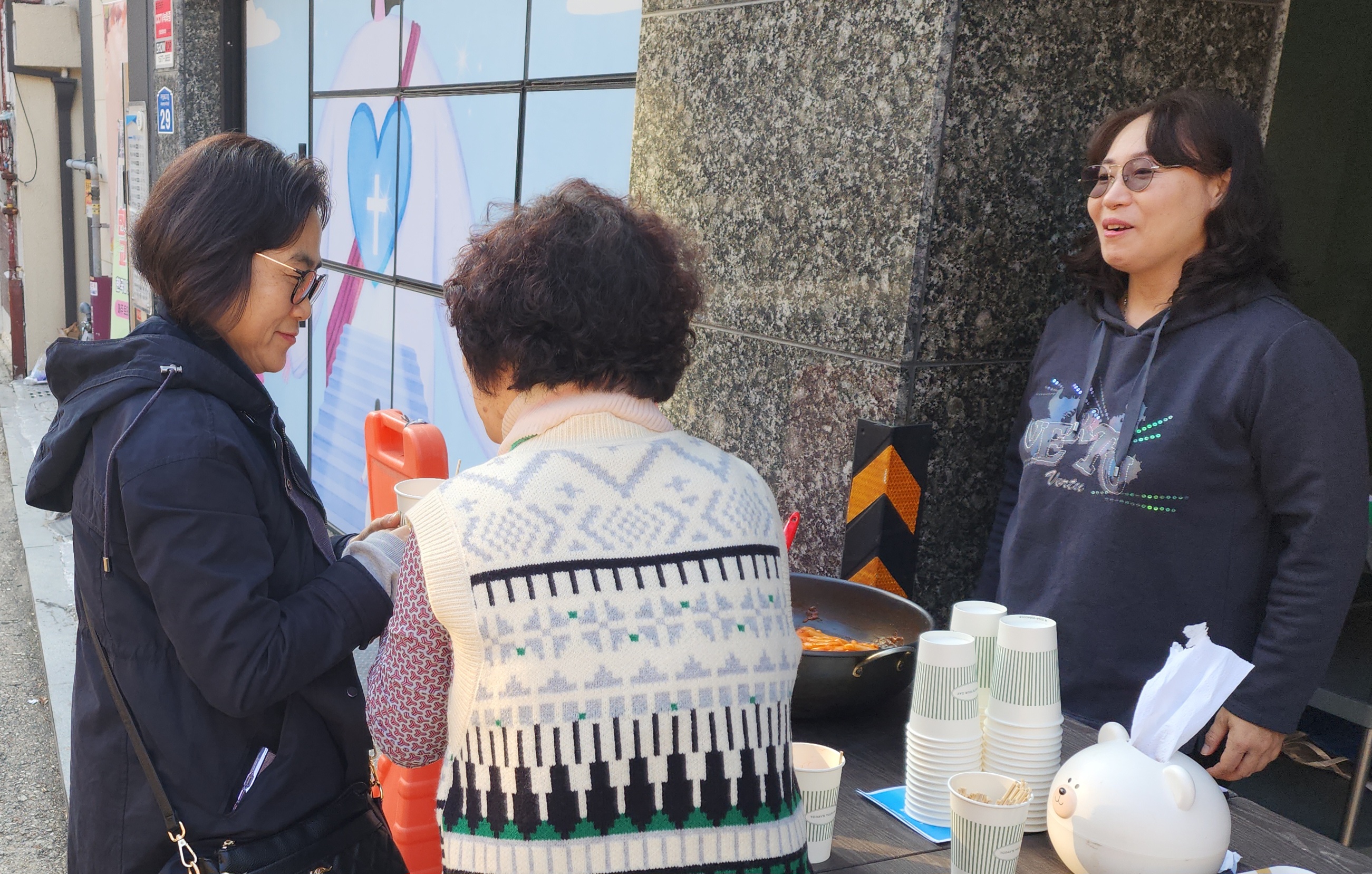 수요전도 34주차 잘 했어요. 오늘도 수요전도 잘했어요. 수능 전날이라 학생들이 일찍 가서 떡볶이가 남을 줄 알았는데 이웃분들 행인분들 많이 받아 가셨어요. 특별히 이용식 씨 간증 집회 때 오셨던 분하고 한참 얘기 나눴어요. 동네 분들이 모두 고마워하고 수고한다고 격려해 주셨습니다. 오늘도 행복한 떡볶이 전도였습니다~