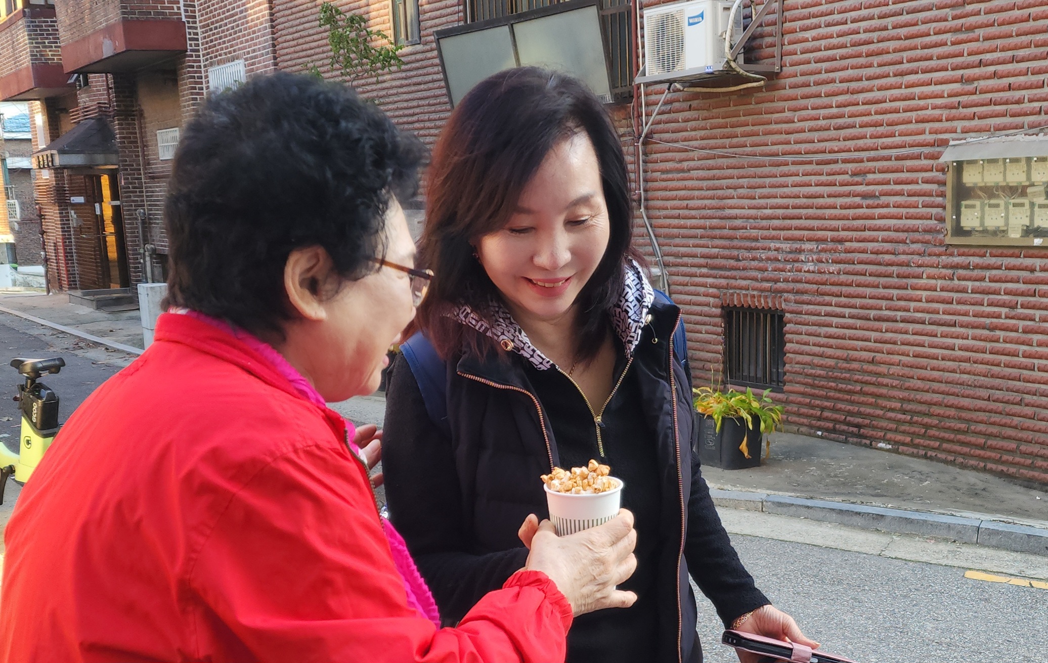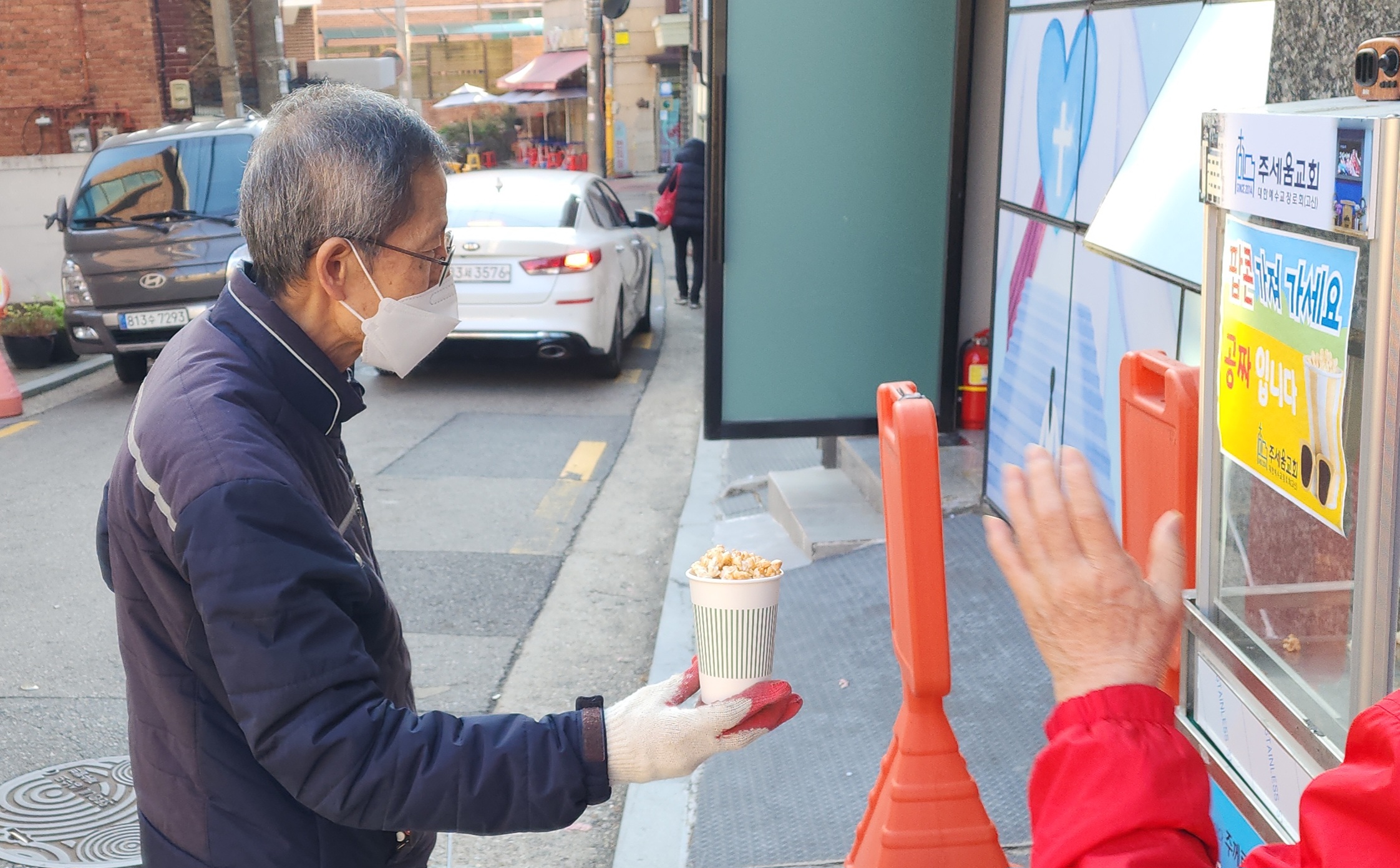 금요전도 36주차 잘했어요. 오늘은 건중이 재량휴업일이라 아이들이 없어서 남을 줄 알았는데, 이웃분들과 행인분들이 많았고, 모두들 받아 가셔서 많이 나눠 드렸습니다. 오늘은 김종순 집사님 김민혜 집사님도 나오시고 노연순권사님도 오셔서 즐겁게 전도했습니다. 이웃들에게 적은 것이지만 정성껏 대접하니까, 교회에 대한 좋은 소문이 나네요. 오늘도 행복한 팝콘 전도였습니다~