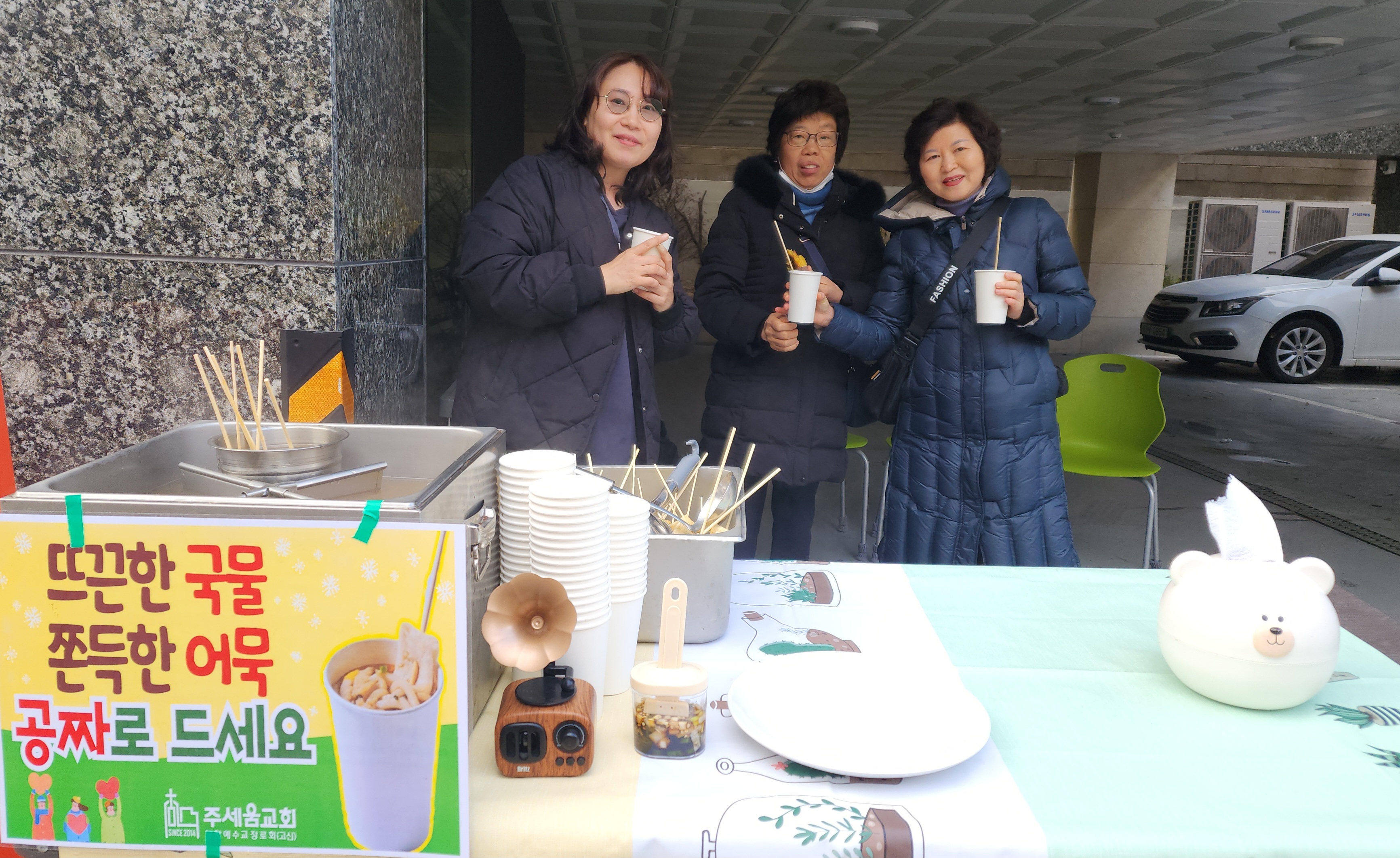 수요전도 35주차 잘했어요. 오늘 날씨가 쌀쌀해서 [어묵전도]를 시작했어요. 아니나 다를까 학생들 행인분들 거절하지 않고 모두들 받아 가셨습니다. 황학동 시장에서 중고로 8만원 주고 산 어묵탕조리기 잘 써먹고 있습니다. 많지 않은 비용으로 준비한 어묵탕이지만 고마워하고 행복해하는 모습을 보니 주님도 기뻐하시고, 나중에 전도의 기회가 있을 때 학생들 행인분들 교회에 대한 좋은 인상을 가지지 않을까 싶습니다. 오늘도 행복한 어묵 전도였습니다~
