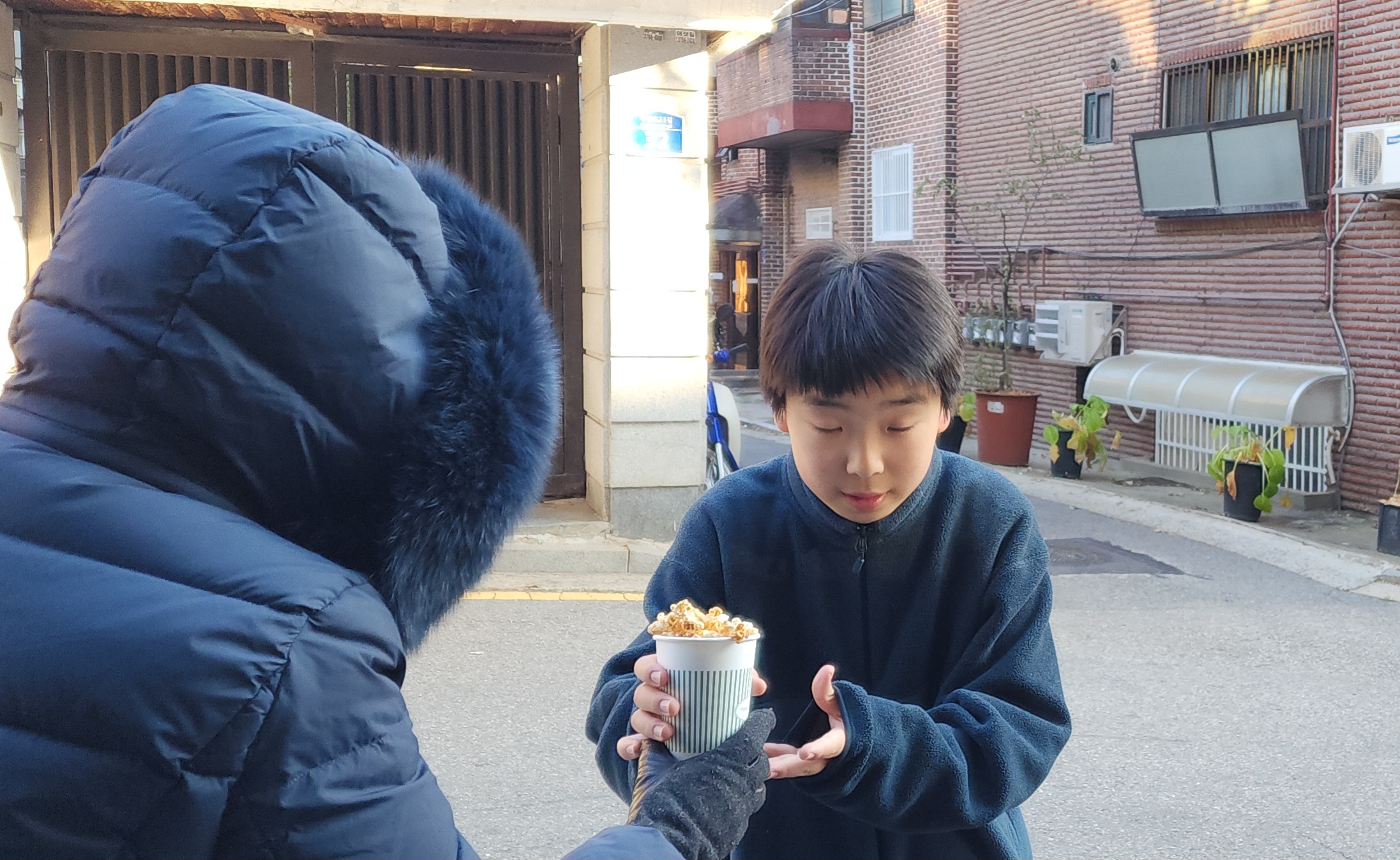 금요전도 38주차 잘했어요. 찬바람이 불니까 팝콘 냄새가 널리 퍼져서 그런지 최고로 바쁘게 나눠 줬어요. 학생들 이웃들 행인분들 다 받아 가시고, 방향이 아닌데도 일부러 와서 받아서 돌아간 학생들도 있었어요. "왜 공짜로 나눠 주냐?"는 물음에 "그냥"이라고 답할 때가 좀 아쉬웠지만, 이것을 받고 교회에 대한 좋은 인식을 가져서 다음번에 전도 받을 때 꼭 교회에 나갔으면 하는 마음입니다. 오늘도 행복한 팝콘 전도였습니다~