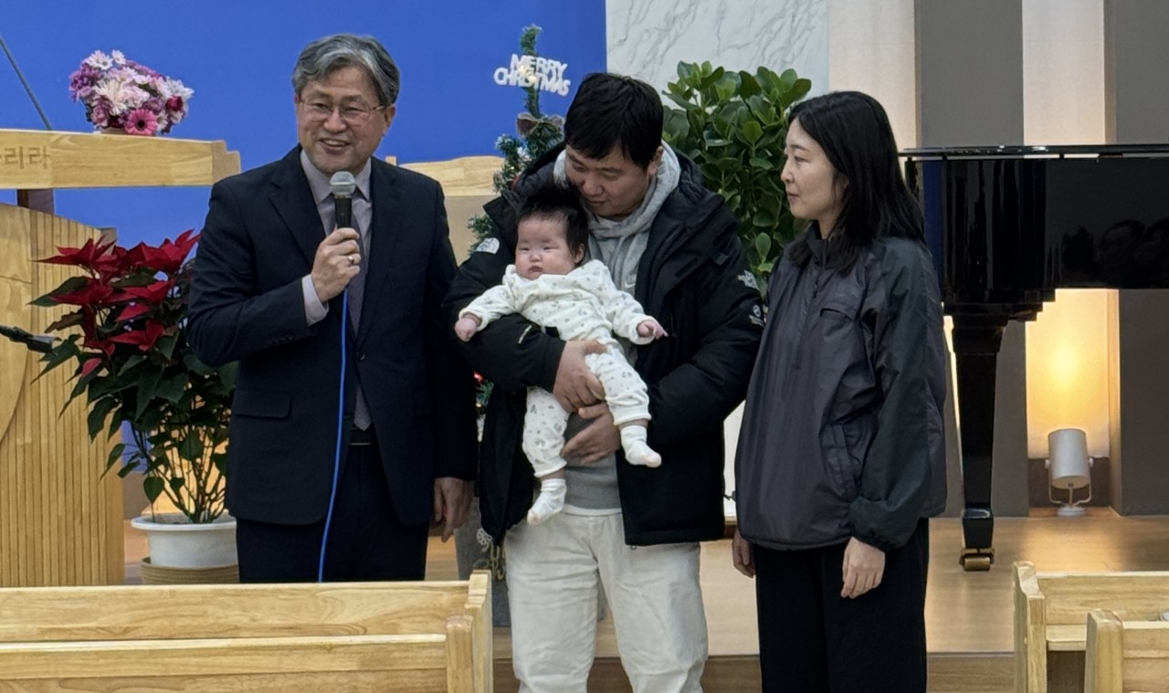 전이솔 아기 첫 예배 드렸어요^^ 전원식, 정연지 집사님 가정에 딸 전이솔가 첫 번째 예배 드렸습니다. 한 달 반 정도 일찍 태어났지만 건강하게 자라게 해 주심에 감사합니다. 앞으로도 더 건강하고 바르게 자라서, 부모에게 효도하고 믿음으로 자라고 나라의 이바지하지 하는 아이가 될 수 있도록 기도해 주세요.