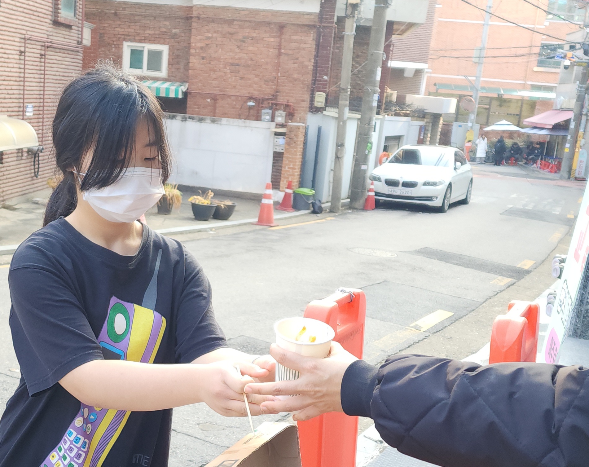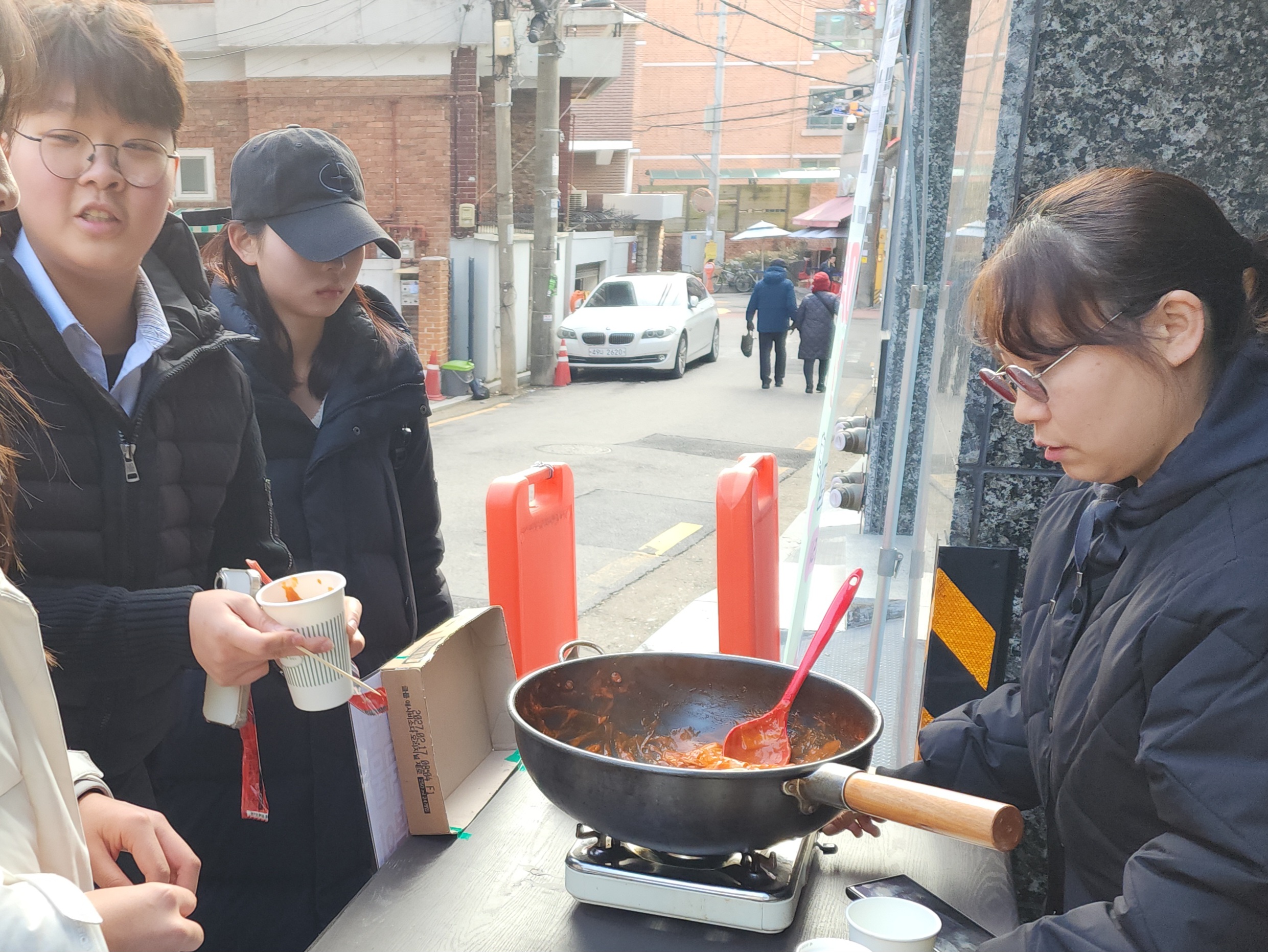 수요전도 33주차 잘했어요. 오늘 건대부중 아이들이 일찍 마쳐서 아이들이 별로 없었어요. 그리고 날씨가 추워서 그런지 행인 분들도 많지 않았어요. 그런데 어디서 나타나시는지 여기저기 나타나셔서, 하나도 남지 않고 다 나눠 드렸습니다. 전도는 시작할 때는 힘들어도 끝날 때는 항상 기쁨으로 끝나네요. 오늘도 행복한 떡볶이 전도였습니다~