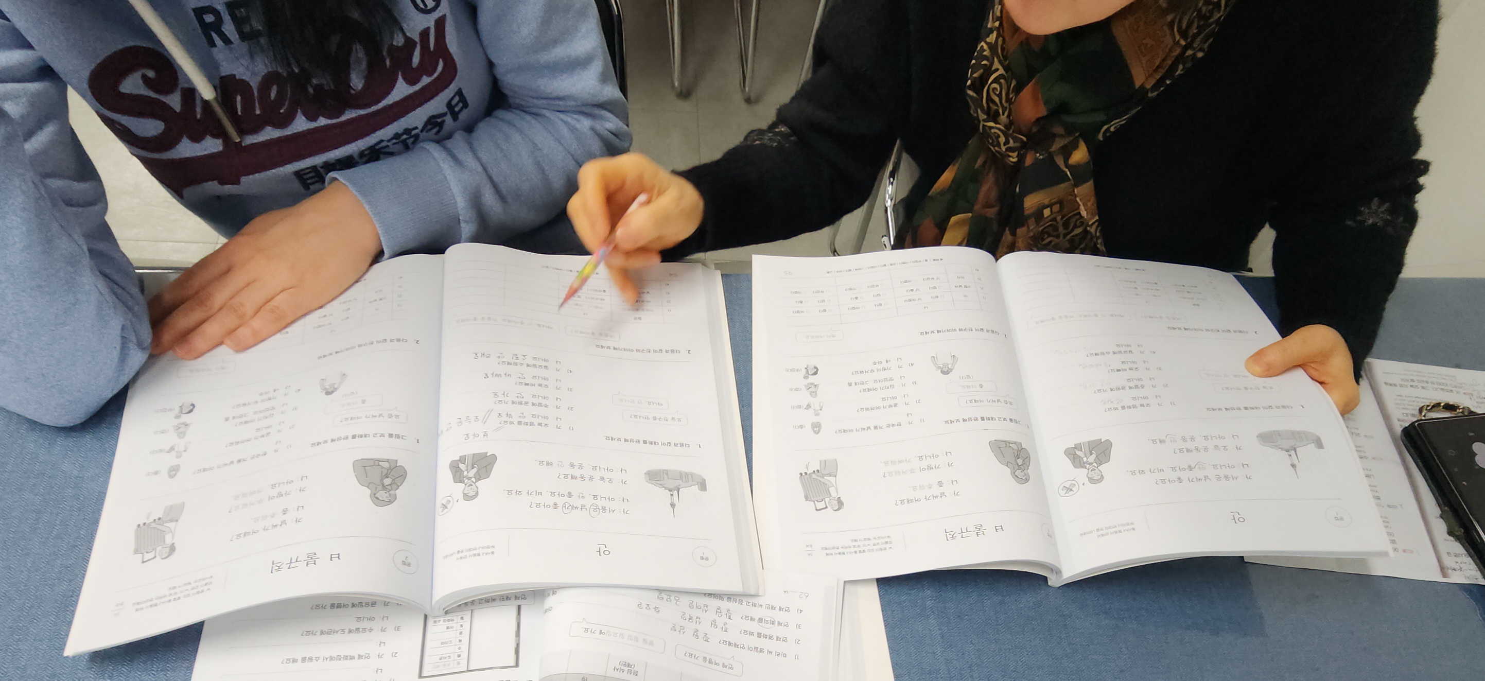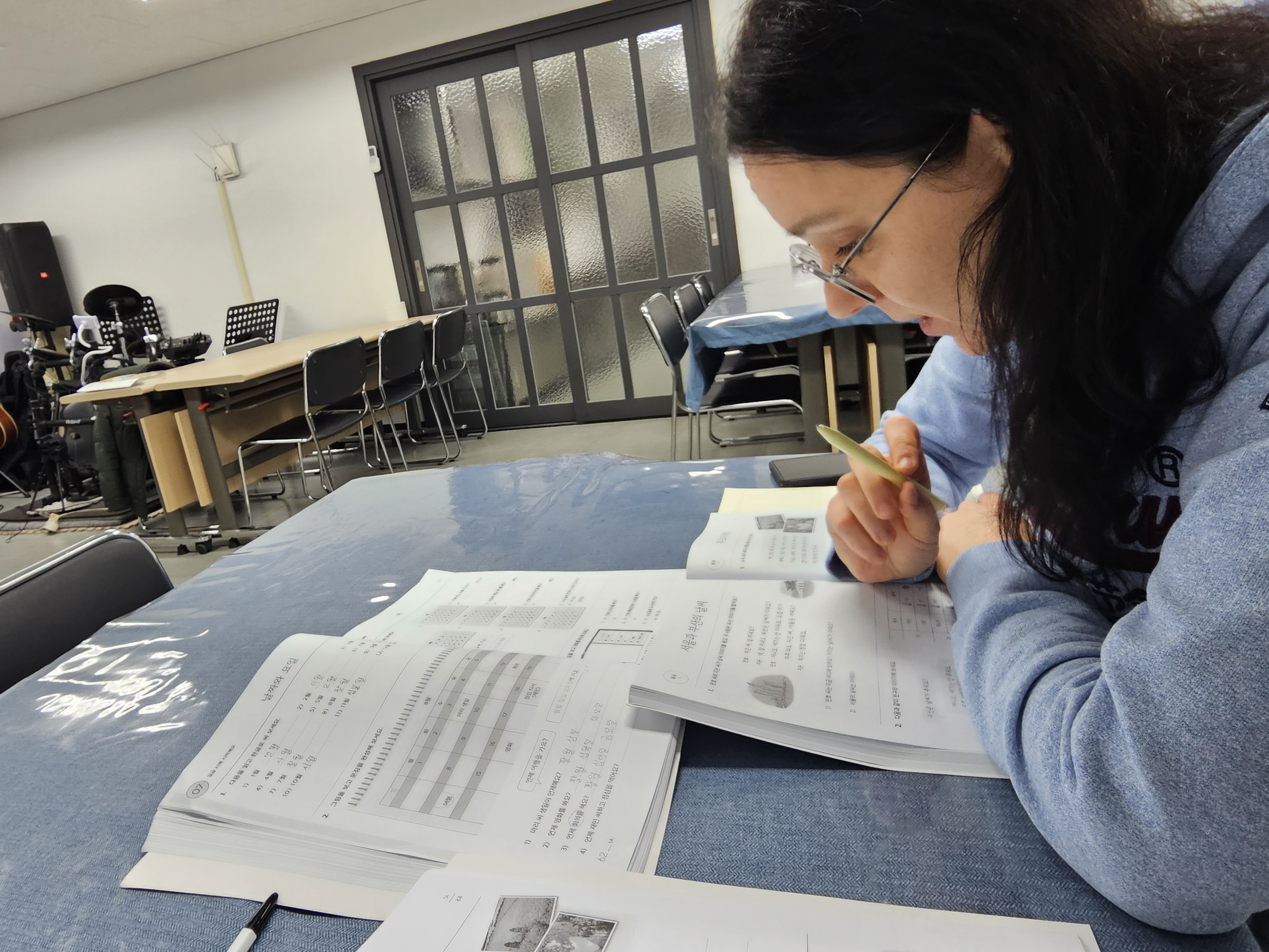 한국어 교실 8주차 잘했어요. 오늘도 수잔 늦지 않게 나와서 열심히 공부했어요. 발을 다쳤는데도 수업 빠지지 않고 나왔습니다. 다음 주 토요일 저녁 6:30에는 이주민사역부 송년회를 하겠습니다. 교회로 6시 반까지 오시면 바르미샤브샤브로 함께 출발하겠습니다